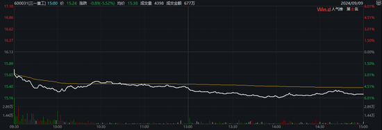 当天,三一重工股价重挫近6%,最新市值1292亿元。